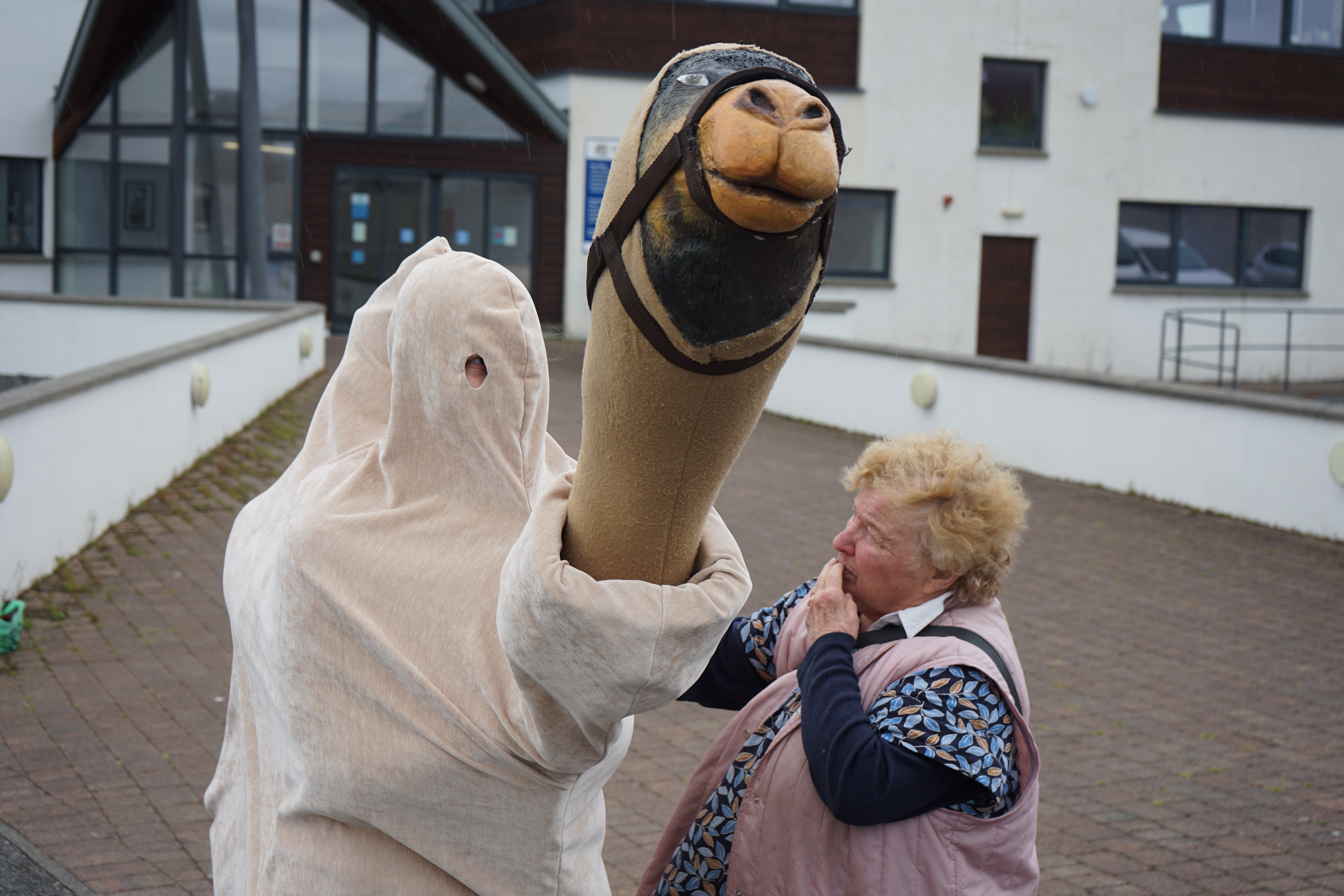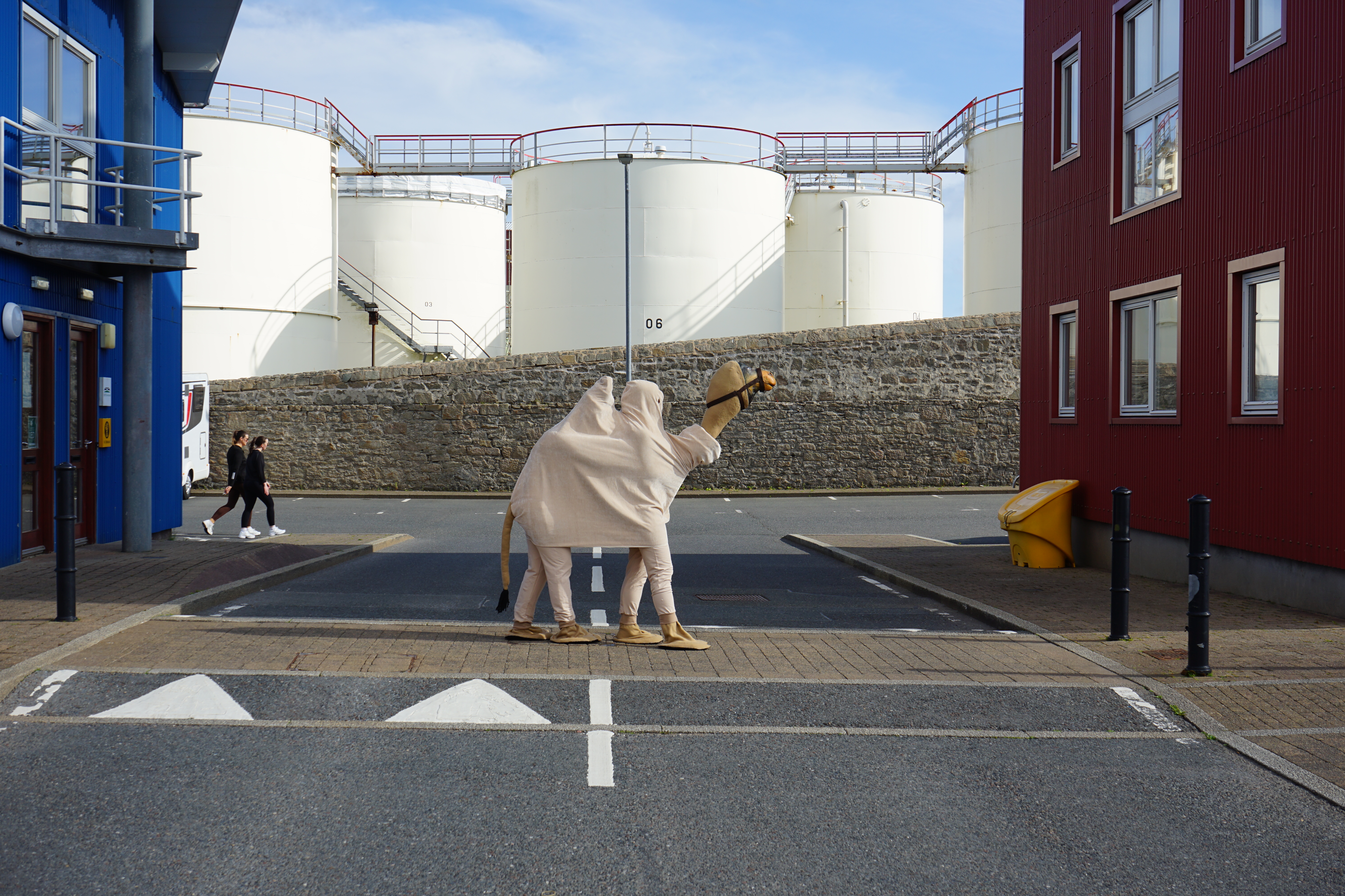 In light of the opening of the new Rosebank oil field north-west of Shetland (planned to start operating in 2026), it is time again for these discourses to re-emerge. TMET uses re-enactment and performative intervention to bring back and revive 8 selected energy acts from the archives. For this purpose, costumes and props were recreated and placed back into the industrial environments the acts discussed and critiqued once, letting interactions around them unfold spontaneously. In this way, the costumes become tools for conversations around energy, which allow for contemporary discussion about what roles these industries play in the Shetlanders’ lives today.